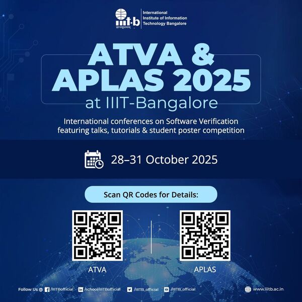 The international conferences ATVA 2025 and APLAS 2025, the 23rd editions in their respective series, will be held from 28–30 October 2025 at IIIT-Bangalore.
